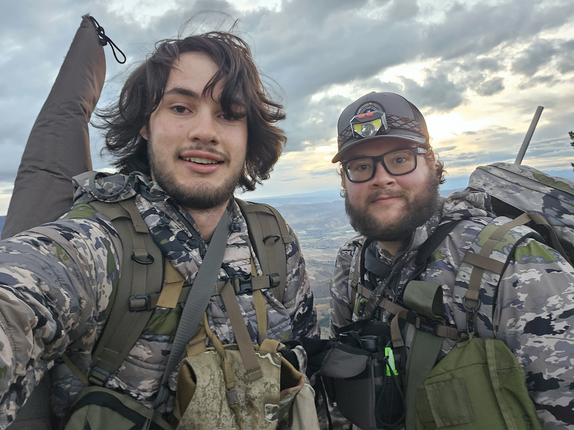 Around this time, I went back to the jeep and took another nap. After my nap, I went down below to the spot where I bumped the five does, but this time I made my way down earlier and quietly. Around four o'clock, I saw two small two-point bucks coming out from the pines to feed. However, there was no other deer as it reached dark. My brother Dallen came by that night, and we discussed what to do on Sunday. On Sunday, we checked more in-depth around the area where I saw the small bucks sparring. We unfortunately didn't see any deer over there. When we checked where I saw a bunch of does the first morning of my hunt, and saw just some does again, we decided to try a new spot. A couple of hours before dark, we arrived at the new spot where we saw lots more deer than I had the rest of the hunt. We spotted mostly does, but right before dark, we spotted a small four-point buck and a small two-point. The four-point buck did a U-turn when it saw us and went into the trees, and we waited for it to come out. However, it never came out.