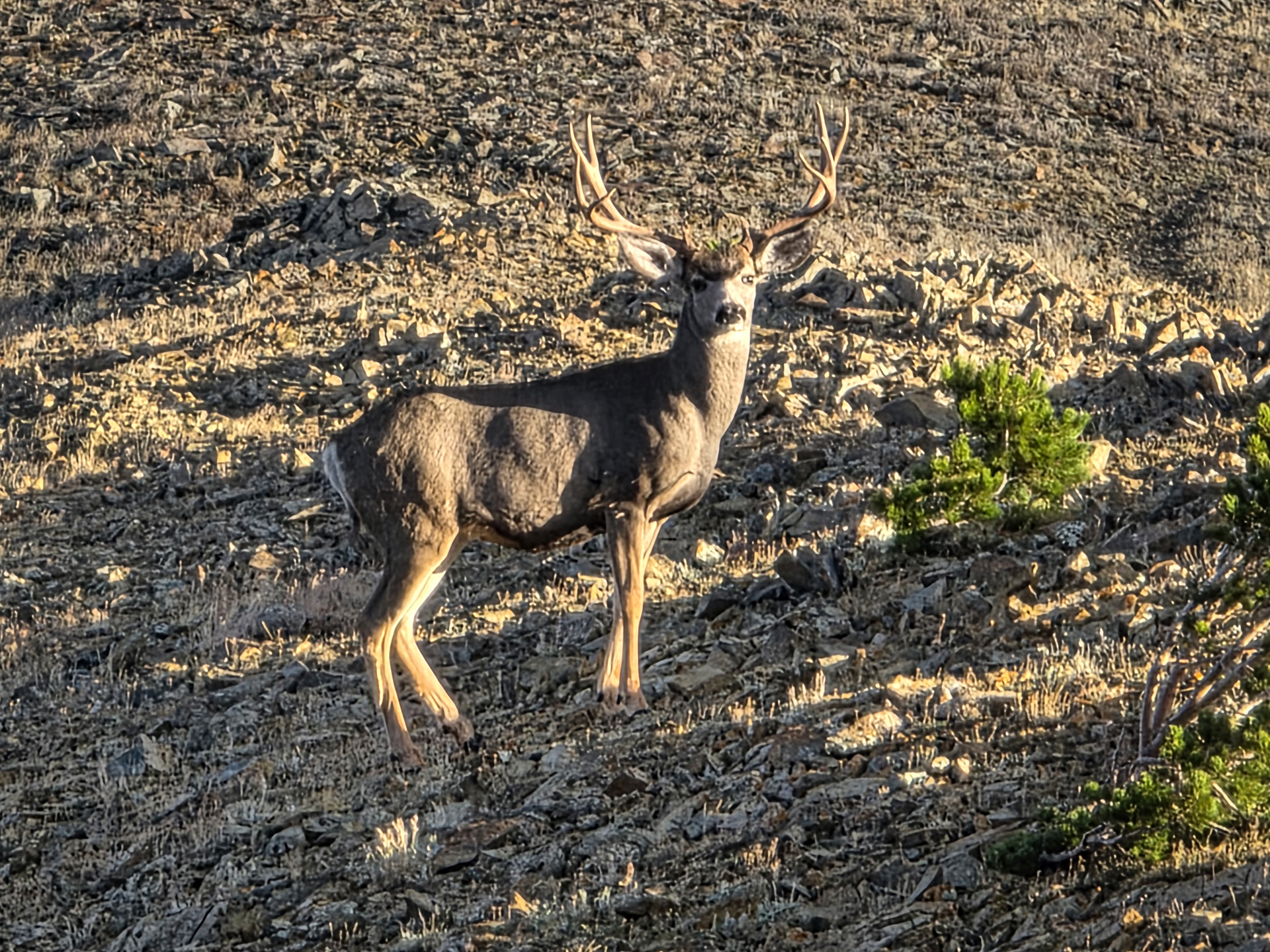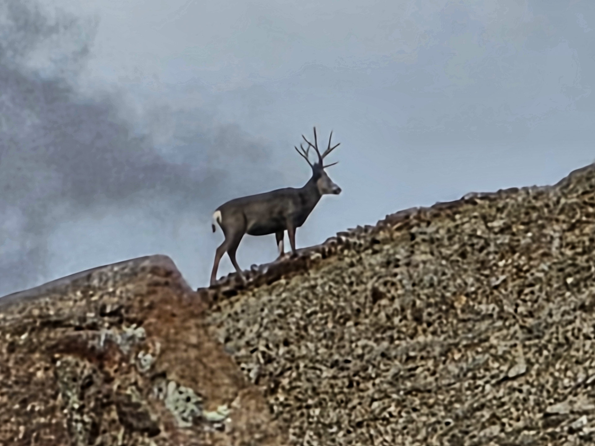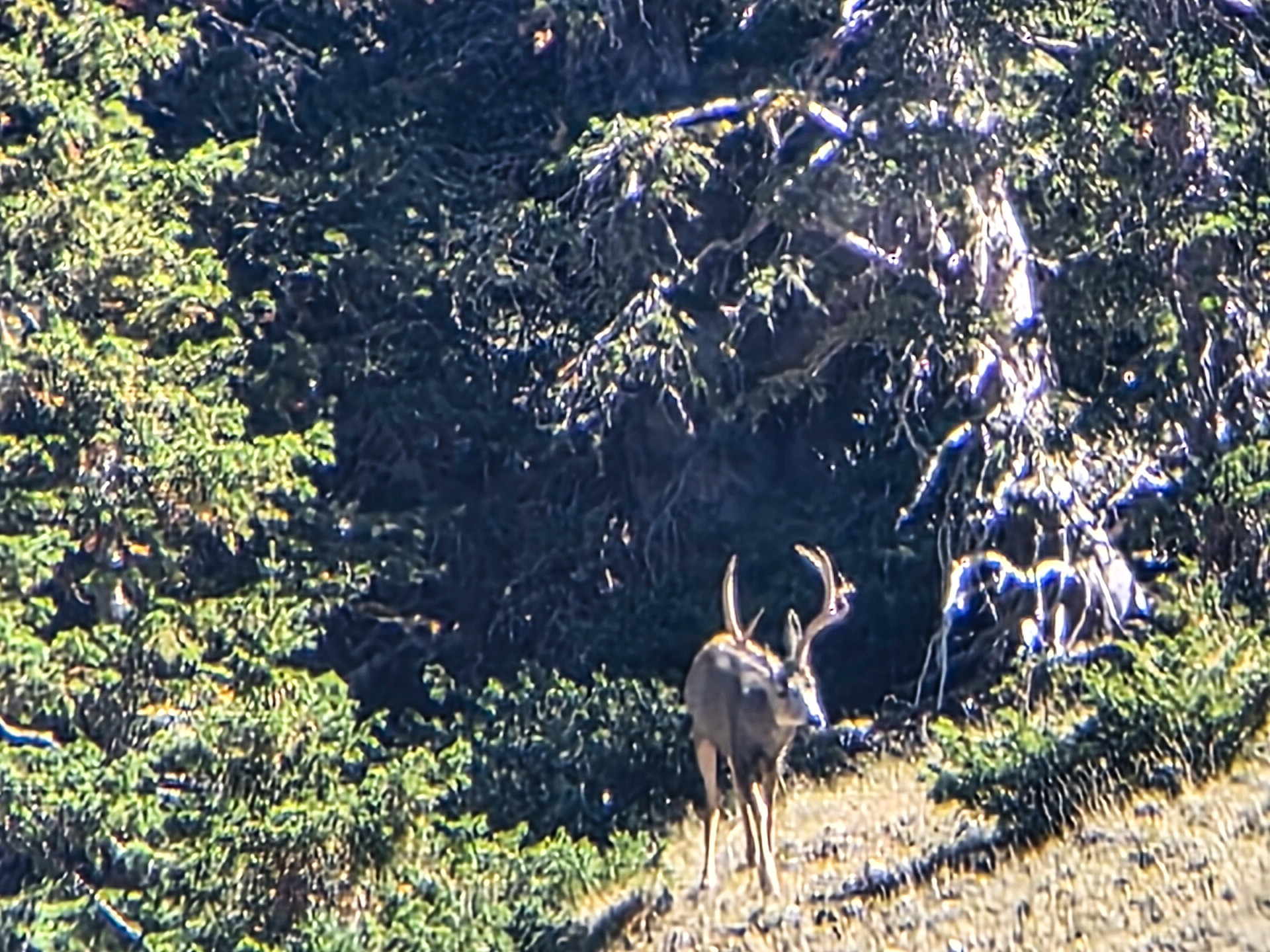 The best buck I could find on my hunt. You can see a large inline on his left side G3. The image isn't the greatest quality, as the denoise filtering in my cell phone has smoothed out the image greatly, with the buck being 325 yards away. If you watch the video at the beginning of this article, you can see this buck better in that video. If this buck wasn't taken in the rifle season, he should be around for the 2026 season. This is where he was when I bumped him (38.06133, -110.78872).