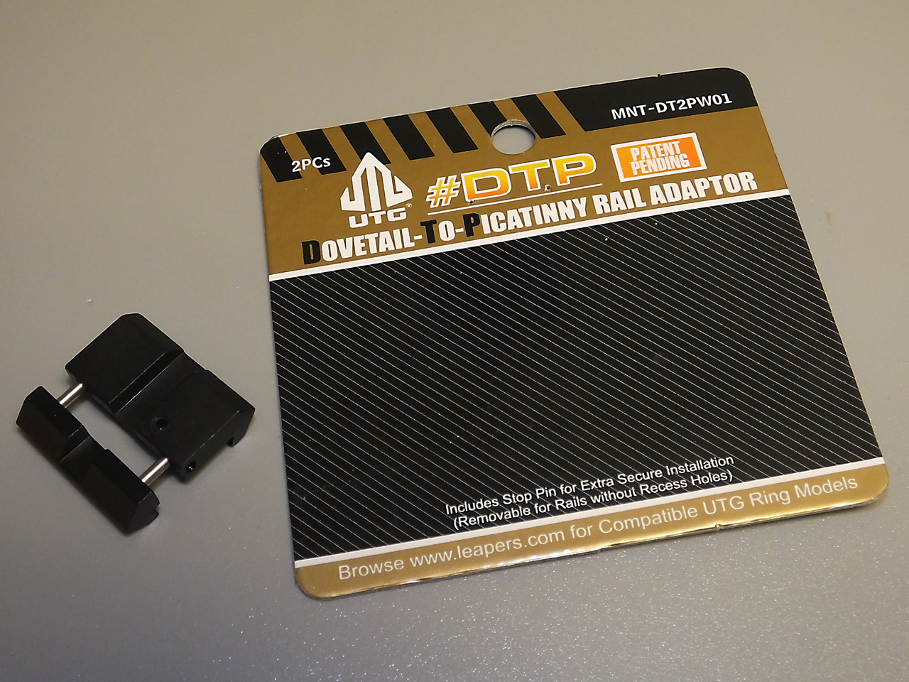 Dovetail to Picatinny Rail Adaptors from UTG, MNT-DT2PW01 (pictured one of two that come in the package)