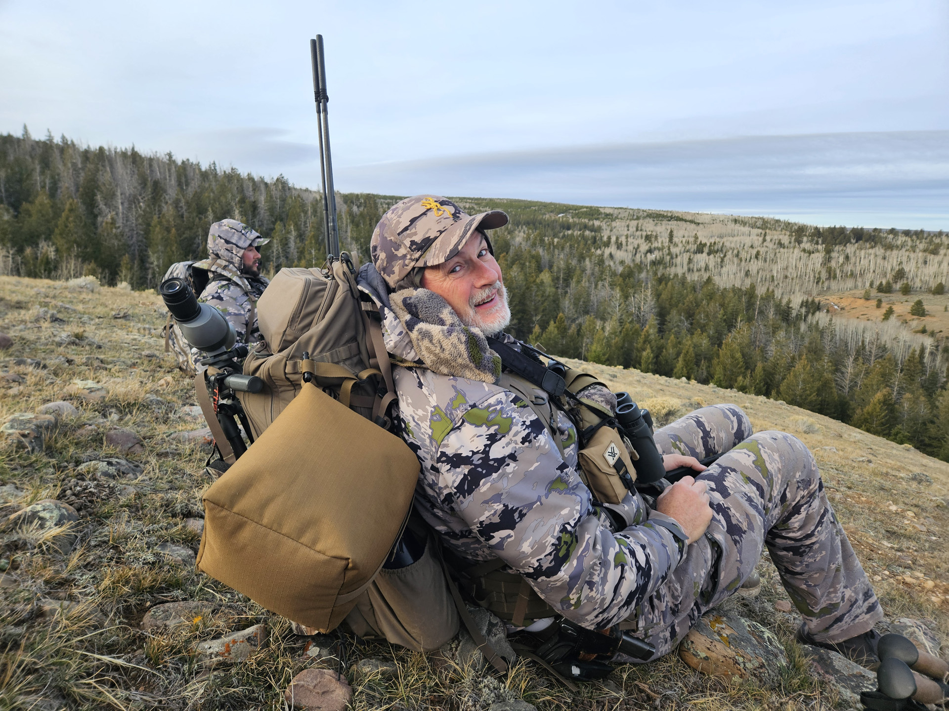 Day five, I slept in until just before light and started glassing up the usual bucks in the area from my Jeep that was parked on Bull Creek Pass. After a half hour of glassing, I was pulling out to start heading toward Mt Pennell when a group of family members that was scouting for the rifle season pulled up to the pass. I had spoken with some of them on the road in the dark the night before and they also expressed that the mature bucks they were finding were in the 150 to 170 class, just like what I was seeing. I was in no rush as I was taking a day of rest from all of the hiking I had been doing. We visited as we watched buck after buck from this pass.