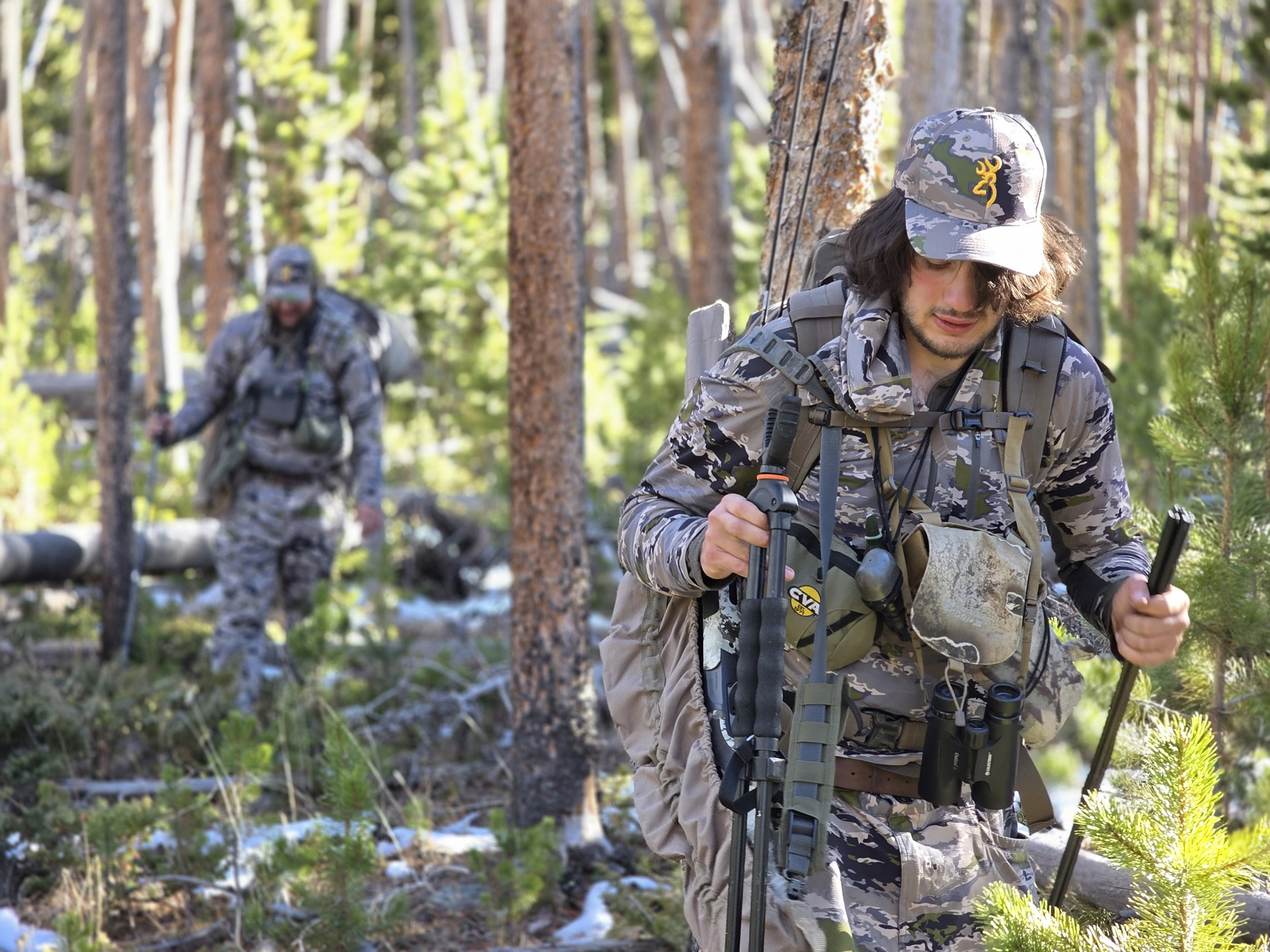 We moved to a new location where we could hunt for a couple of hours till dark, and this spot had the freshest sign we'd seen the entire trip. We were able to watch a big meadow before dark hit, but we knew we wanted to hunt this area pretty heavily for the next couple of days. There were many spots and openings with quaking aspens for the elk to travel through, with plenty of openings for us to check for them. When we woke up the next morning, and barely started hiking and were going around a corner, Dad stopped dead in his tracks and looked like he was doing a double-take."There's an elk," he whispered to me, and sure enough, there was a cow elk down the hill to the left of us. As we were watching the cow, we observed to see if there were any more elk with her. Unfortunately, a large tree had blocked our view of the hillside. So, I made my way to the right and saw two more cows, but they were bedded down.