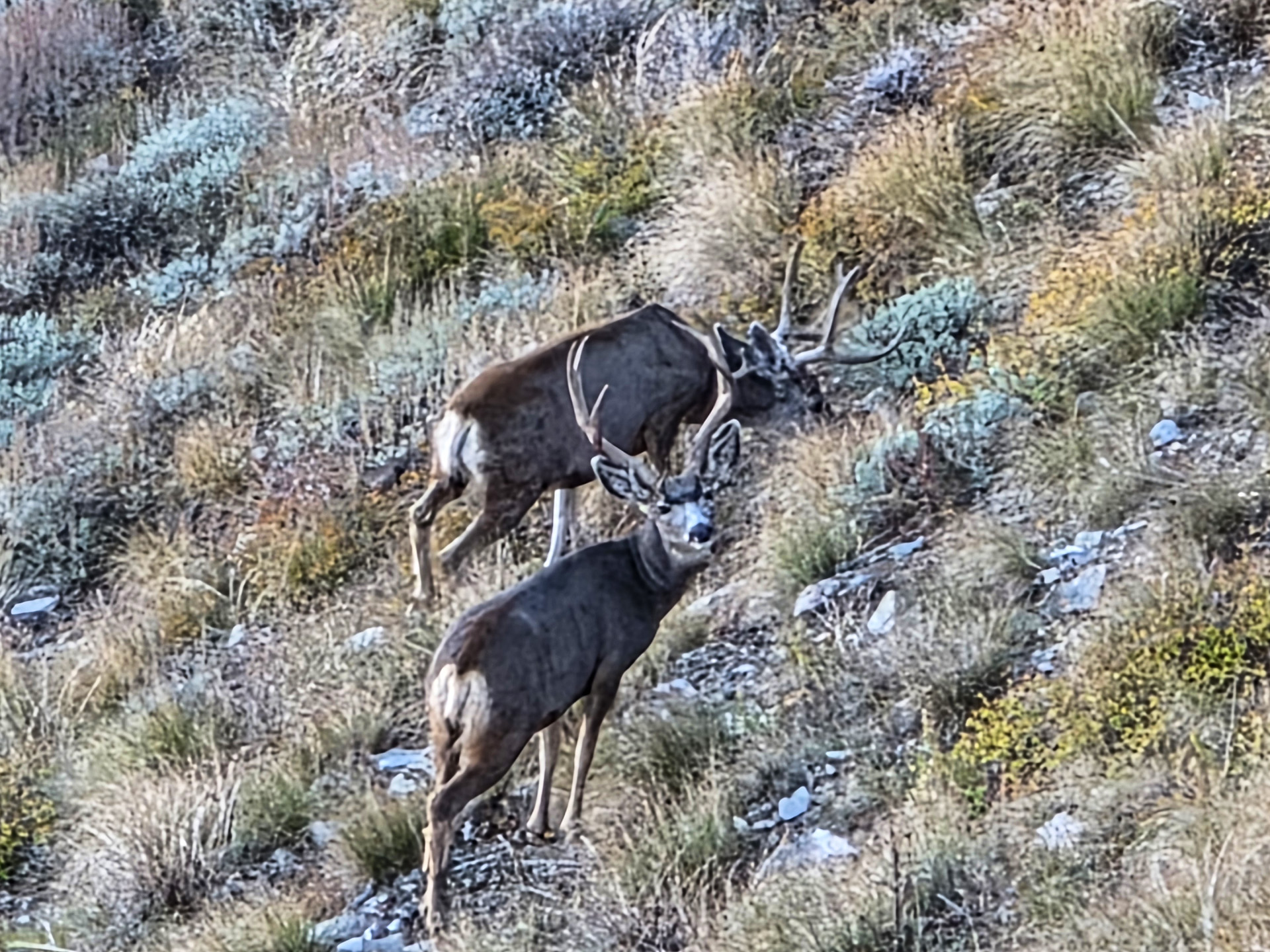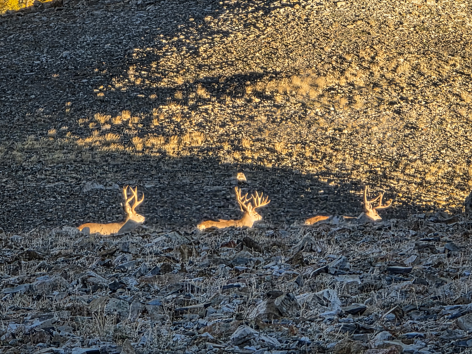 The best buck I could find on my hunt. You can see a large inline on his left side G3. The image isn't the greatest quality, as the denoise filtering in my cell phone has smoothed out the image greatly, with the buck being 325 yards away. If you watch the video at the beginning of this article, you can see this buck better in that video. If this buck wasn't taken in the rifle season, he should be around for the 2026 season. This is where he was when I bumped him (38.06133, -110.78872).